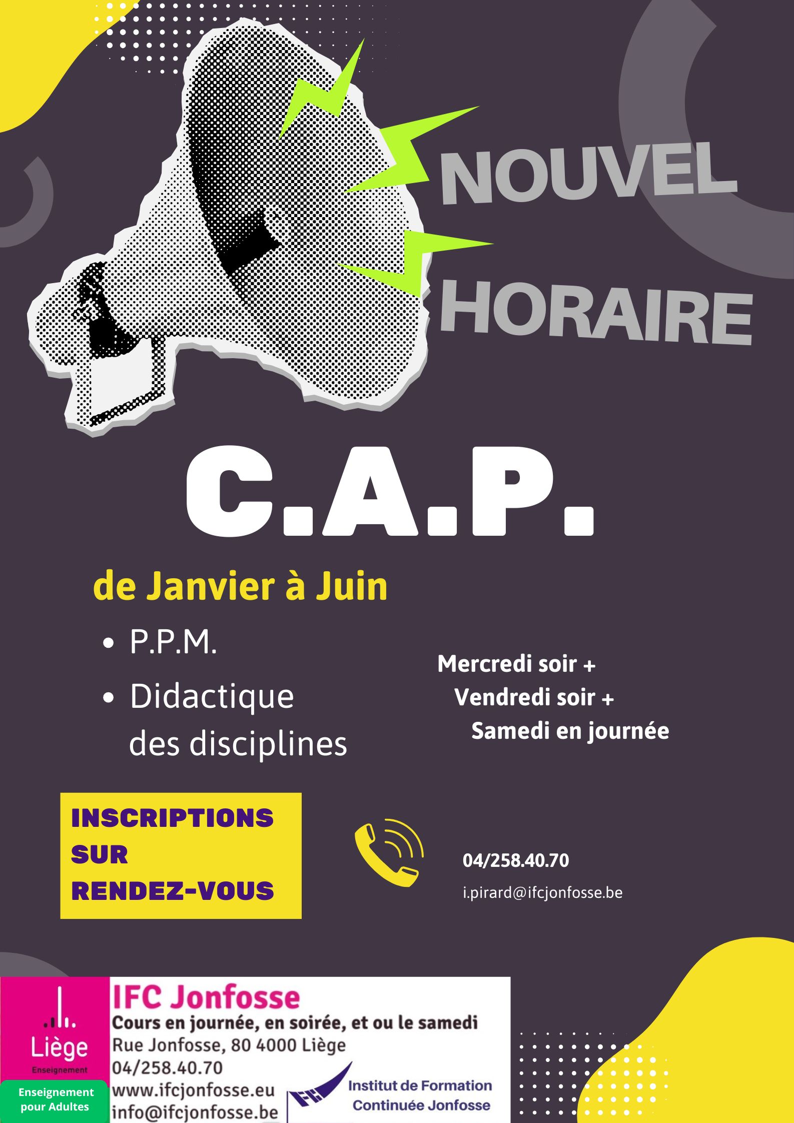 C’est dans ce contexte que l’Institut de formation continuée se situe. Organisant des formations du niveau secondaire mais aussi supérieur, l’IFC propose des formations variées adaptées en fonction de leur public potentiel. L’expertise proposée se concentre sur les domaines pédagogique (Certificat d’aptitudes pédagogiques, CAPAES, CAES, Pédagogies actives, module DI), l’alphabétisation et le français langue étrangère, les arts de la table (Commis, restaurateur, traiteur, organisateur de banquets, Œnologie, initiation à l’art culinaire), la gestion des ressources humaines (bachelier en GRH) et les humanités générales (CESS). Ces formations proposées à un large public sont également rendues réalisables par une organisation horaire diversifiée puisque les activités d’enseignement y sont organisées non seulement de jour mais aussi en soirée et le samedi.